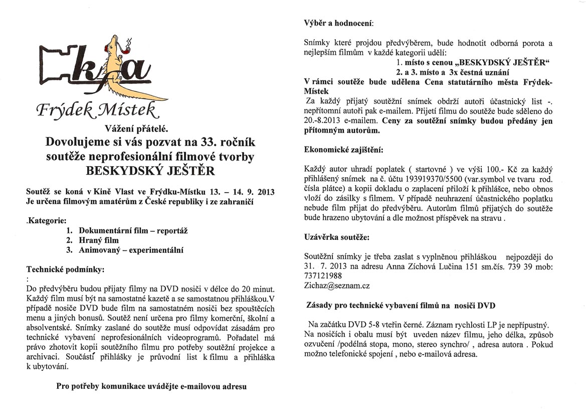 Kliknite pre viacej informácií...  Download... Juniorfilm 2013 - Přihláška filmu (PDF)